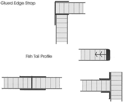 Several types of finishes are possible for laminated panels. Molding of polyester skins makes it easier to work out edges, as shown in the following examples: